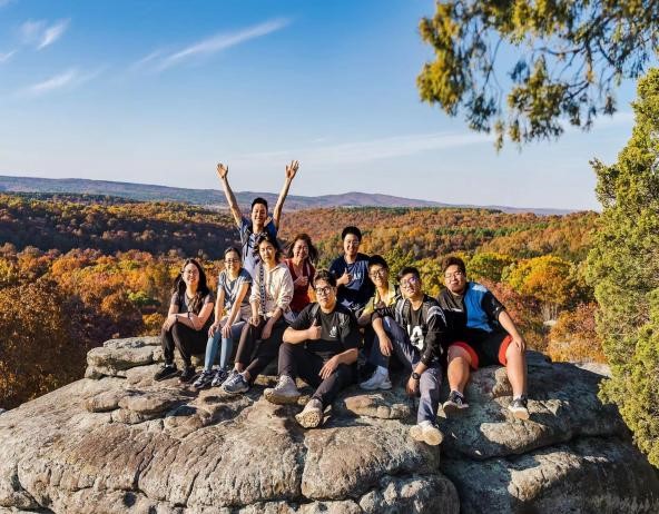 有一天,我和同学们决定去远足,感受五彩斑斓的树叶和清新的秋风。我们出发到距离学校一个多小时的一处露营地——The Garden of Gods——翻译过来,叫“诸神的后花园”。这里的风景十分优美,令人震撼。山体婀娜,奇形怪状。有一座山,在远处看竟然像一只昂首阔步的骆驼。走进里面,可以看到树木呈现出耀眼的红色、橙色和黄色,凉爽的空气充满了我们的肺部。我们带着兴奋不已的心情准备徒步旅行。树叶在脚下沙沙作响,甚至能听到远处溪流的声音。