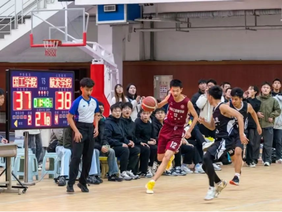 2024年10⽉23⽇,学校⼀年⼀度的“新生杯”篮球赛决赛在体育馆落下帷幕。学院篮球队在本次⽐赛中奋勇拼搏,勇夺冠军!