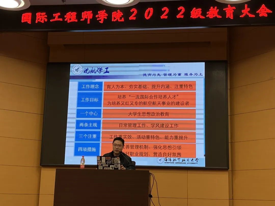 为进一步加强学生的教育和管理,引导学生树立坚定的理想信念,明确学习目标,做好职业规划,帮助学生成长成才。3月15日中午12:30,在图书馆国际报告厅举行沈阳航空航天大学今年会官网2022级思想政治教育大会,本次活动由学院副书记赵楠主持。