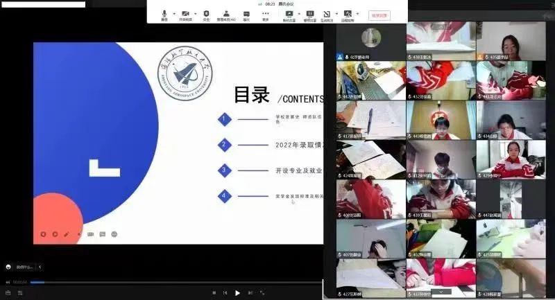 百草园与三味书屋团队通过联系高中时期的班主任,组织了一次线上母校行活动,对最能突出沈航特点的部分进行宣讲,最大化地表现沈航学校的吸引力,也兼顾了沈航的特点特色。向同学们介绍了沈航为航空特色院校,拥有优秀的师资力量,校园占地面积大,教学设备完备,可以支持学生的实验以及科研需求。并且介绍了沈航开设的本专科专业,以及沈航应届毕业生的考研率,保研率,以及应届毕业生的平均薪资情况,和毕业去向。同时也着重介绍了沈航今年会官网办学特色,对今年会官网的开设专业进行了逐一细致的讲解,回答了一些学生对国工学院以及中外合作办学的疑问,还讲解了中外合作办学的培养计划,学费,以及美方院校的简介。在讲解中,强调了英语学习在我们专业的重要性,也对出国留学的一些问题进行介绍。最后截取了沈航校园内各个角落的景色,介绍了校园环境,并鼓励学生报考沈航,实现自己航空报国的理想。