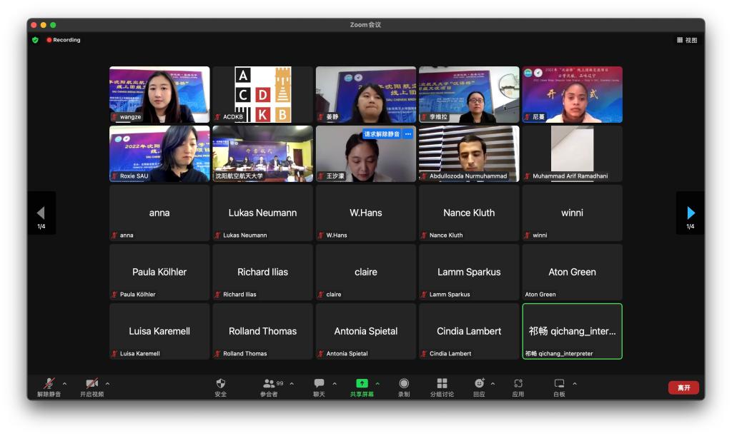 沈阳航空航天大学2022年“汉语桥”线上团组交流项目“云学沈航•品味辽宁”开营仪式