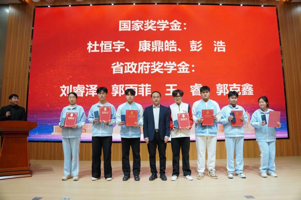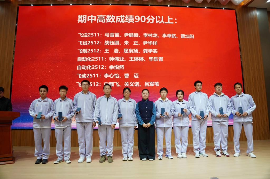 表彰环节中,学科竞赛、奖学金、体育赛事及期中高数优异的学生代表依次受奖。