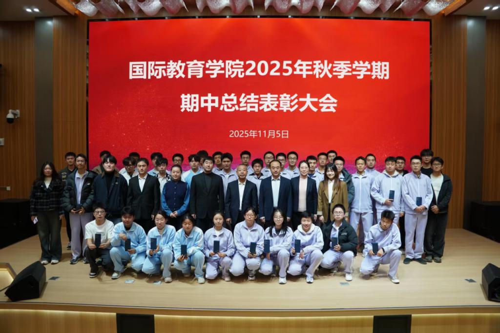 11月5日,国际教育学院2025年秋季学期期中总结表彰大会在3号楼101报告厅举行。国际教育学院分管日常工作副院长陈永庆、学院党委书记季志刚、党委副书记、纪委书记尹大伟、院团委书记张琨伟、全体兼职辅导员、助理辅导员、团学干部代表及各年级学生齐聚现场,总结半学期成果,表彰先进典型,共同明确下一阶段目标。会议由学工办主任张楠主持。