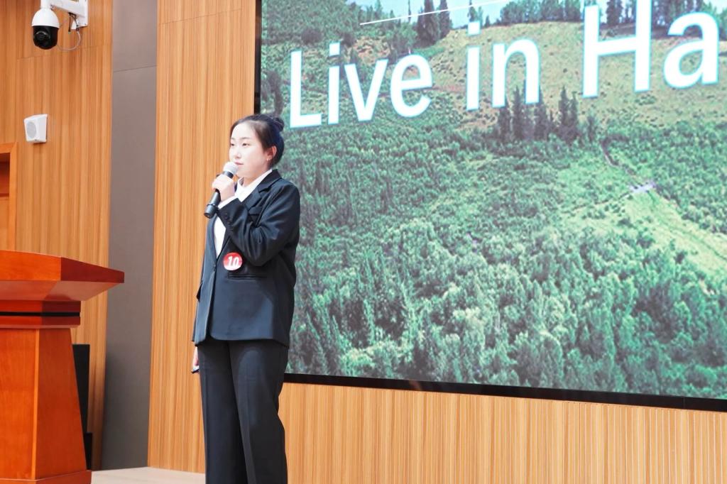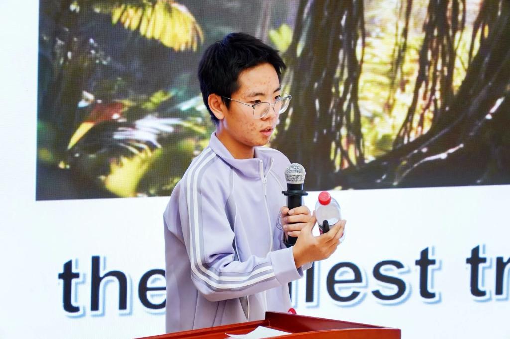 经过初赛选拔,来自两个学院的12名优秀选手进入决赛。选手们以“珍爱地球·人与自然和谐共生”为主题,用流利的英文阐述环保理念、分享实践故事,展现了扎实的语言功底与深刻的生态思考。同时,来自国际教育学院的两名留学生的演讲令人印象深刻,他们用流利的汉语表达了“全球青年共护蓝色星球”,为赛事增添了多元色彩。